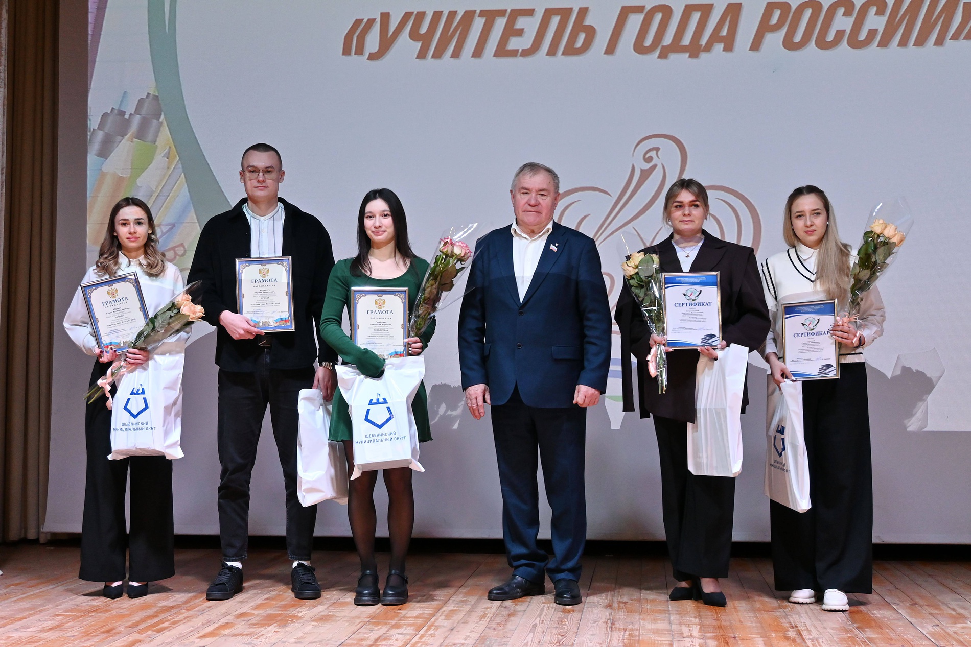 27 января 2026 года на базе Центра культурного развития состоялась торжественная церемония награждения участников муниципального этапа Всероссийского конкурса «Учитель года России» 2026. Со словами приветствия к руководителям школ и конкурсантам обратились депутат Белгородской областной думы по Шебекинскому одномандатному избирательному округу Олеся Леонидовна Нестеренко, начальник управления образования Шебекинского муниципального округа Людмила Юрьевна Карницкая и председатель Шебекинской территориальной организации профсоюза работников народного образования и науки Российской Федерации Анатолий Михайлович Сабадаш. В этом году в конкурсе «Учитель года России» 2026 приняли участие 14 педагогов общеобразовательных организаций. В ходе праздника были подведены итоги, вручены грамоты управления образования и памятные подарки. В номинации «Лучший учитель» ПОБЕДИТЕЛЕМ признана Склярова Олеся Леонидовна, учитель русского языка и литературы Шебекинской СОШ с УИОП. Призерами стали Аулова Диана Сергеевна, учитель русского языка и литературы Шебекинской средней школы № 5, и Поповски Дарья Сергеевна, учитель начальных классов Шебекинской средней школы № 2. В номинации «Педагогический дебют» почетное место ПОБЕДИТЕЛЯ присвоено Рузайкиной Анастасии Юрьевне, учителю информатики Масловопристанской средней школы. Призерами признаны Юрьева Алина Александровна, учитель физики Шебекинской средней школы № 3, и Меркотун Кирилл Валерьевич, учитель физической культуры Шебекинской средней школы № 2. С напутственным словом к участникам мероприятия обратился клирик храма в честь иконы Божией матери «Всех скорбящих Радость» - священник Сергий Монтус. Поздравляем победителей и призеров муниципального этапа Всероссийского конкурса «Учитель года России» 2026 и желаем победителям достойно представить Шебекинский муниципальный округ на региональном уровне!